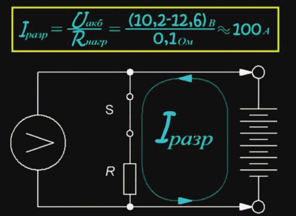 Before turning on the load, it is useful to check the battery charge. To do this, measure the potential difference at the battery terminals in unloading mode.