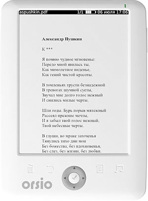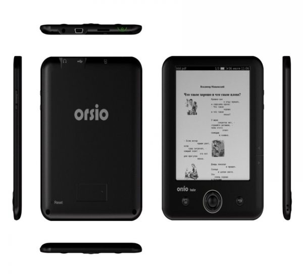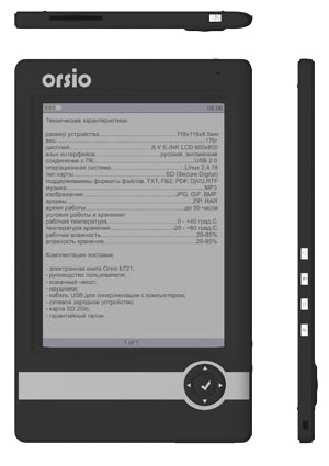 The best model from the available e-books Orsio. The device has the technology of "electronic ink". The book supports various formats, such as HTML, TXT, PDF, Djvu, FB2, as well as PGN, JPG images and ZIP files.