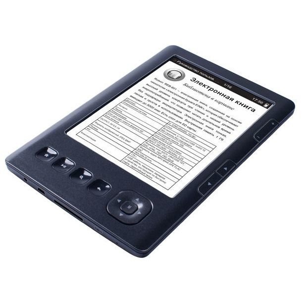 The REB-602 uses electronic ink, which makes your eyes less tired while reading. The amount of internal memory of the device 2 GB allows you to download up to 10,000 books. A distinctive feature of this model is the reading of many formats. In addition to standard and widespread, the electronic book is able to recognize documents in the format DjVu, RTF, PalmDOC, CHM, PNG, GIF. The book comes with a charger, a fabric case and a cable. Battery capacity 1200 mAh, diagonal screen 6 inches.