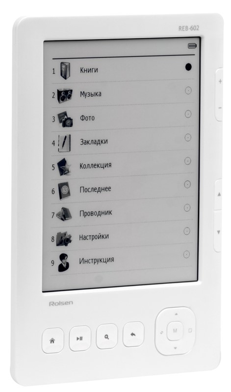 The model is a revised and supplemented version of the Rolsen e-book REB-602. In terms of dimensions and basic technical characteristics, these models are almost identical.