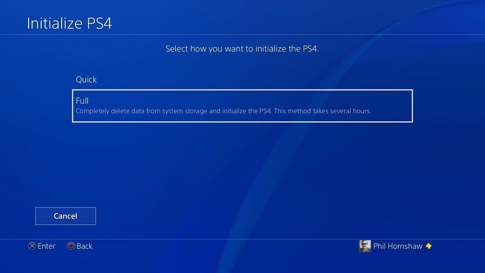 - Open the “Initialization” menu. After going to the settings section, you need to scroll to the bottom until the desired option is visible. After opening, tap “Initialize the PS4 system”. Click on "Full", after which the console will begin the reset process. The user must follow the instructions displayed on the screen.