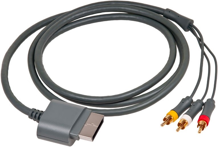 A wire is a device at one end of which there are “tulips” plugs in three colors. At the other end is the plug for the console.