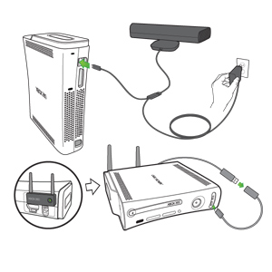 - We connect the cable from Kinect to the Xbox 360 in a specialized AUX connector, which is located above the network connection jack.