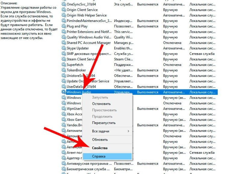 If the service responsible for the sound on the computer is unstable and intermittent, the PC will not be able to play audio. In this case, it is necessary to correct its settings and restart. This is done as follows: