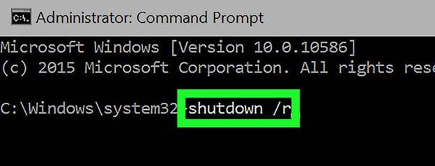 - At the command prompt that opens, enter shutdown / r.