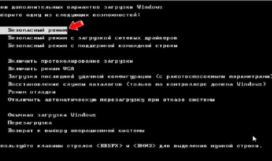 If this action does not help, you should restart the laptop with the F8 key and enter the boot menu. In it you need to find the line "Safe Mode" and select it using the keyboard.