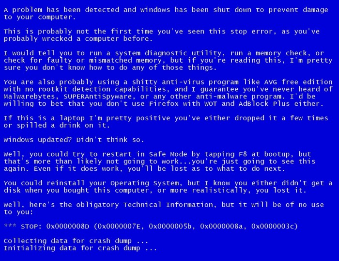 Many owners of PCs and laptops are familiar with the situation when the device does not turn on in normal mode, and begins to show either a blank blue screen or a blue one with inscriptions. Literate users immediately understand that this serious malfunction can only mean one thing - a critical error has occurred in the computer device.
