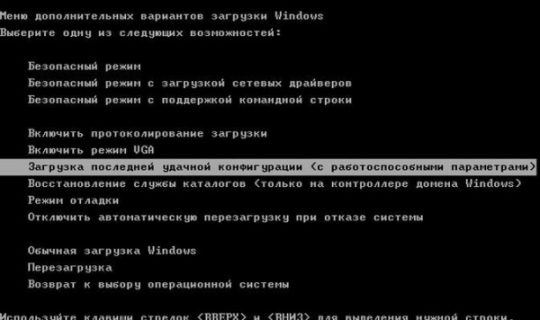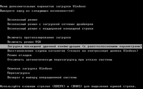 After that, the system will automatically start loading the version of the OS that worked normally until the blue screen appeared. In the event that this method of launching is complicated due to unforeseen problems, you should use one more technique, which involves the so-called “system rollback”.
