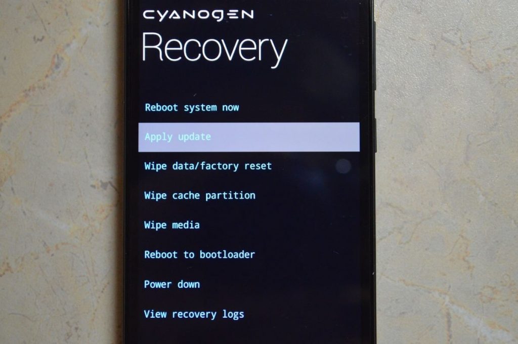 - Put the gadget in Recovery mode (hold down 2 keys: reset + volume up and select the appropriate item);