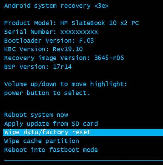 - Select the item “Wipe data / factory reset” by pressing the sound adjustment keys;