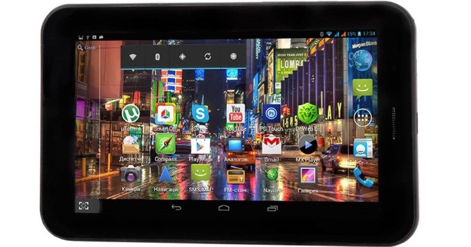The device is made in China with a built-in TV tuner. It has an excellent display with high resolution and excellent color reproduction. The OS is a little outdated, but it copes with five main tasks, such as receiving a signal and finding television channels. The device has: a 7-inch display, 3G, Wi-Fi, Bluetooth, 16 GB memory, two cameras.