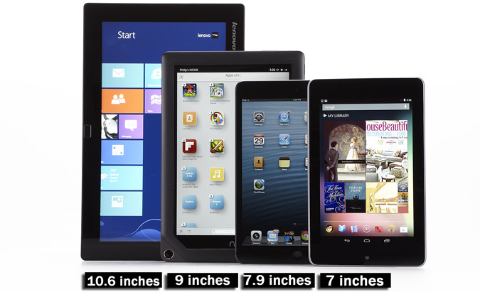 The first size option is from 7 to 10 inches. The smallest, diagonally do not exceed 17 centimeters.To understand how much it is, just look at the ruler or palm of an adult. These models are compact and easy to carry with you in your bag. They are chosen by people who need a “travel tablet” to watch videos, read and play in vehicles.