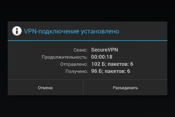 - After a successful connection, a sign in the form of a key will be displayed in the status bar at the top of the screen, which indicates that the device is in a virtual network.
