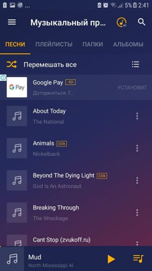With all of the above advantages, Pi Music Player has only one significant drawback - the lack of widgets on the Home screen. But this trifle is compensated by all those opportunities that this player provides to the user. Well, since the player provides all these features completely and completely free, it rightfully takes the 1st place in the list of the best music players for users of the android system.