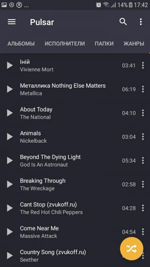 - takes only 8th place, since the free version of the player has very limited capabilities. A more advanced functionality is provided by the paid version of the Pulsar Music Player Pro program. In it are available: