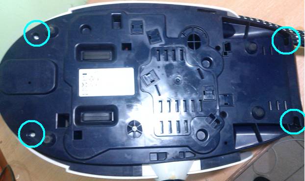 12. After removing the regulator cap, unscrew the screws securing the reservoir to the bottom of the iron. On many models of steam generators there are four such screws, two screws on each side of the device case.