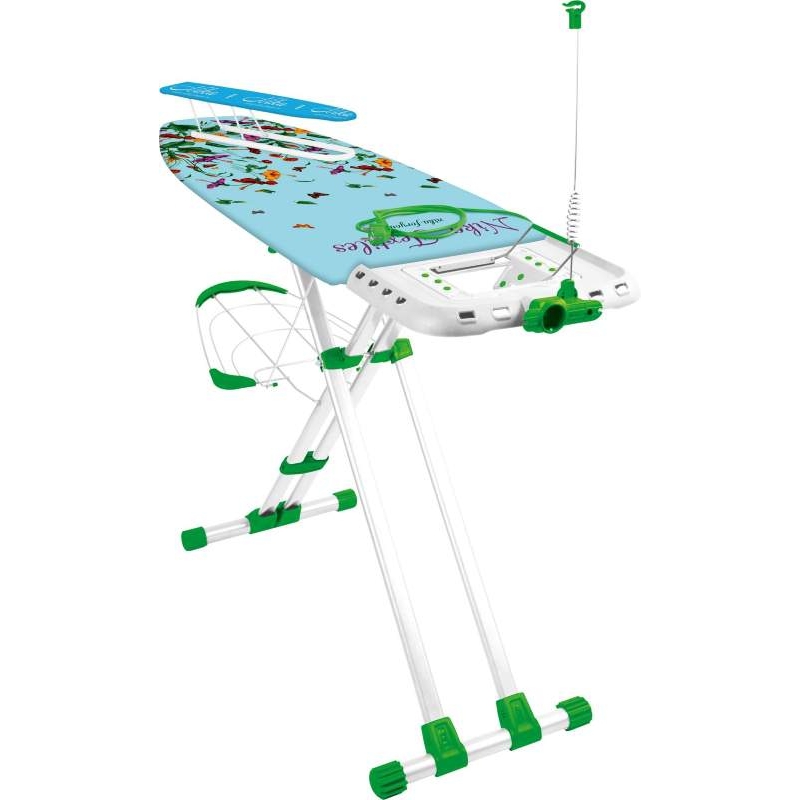 This model is easy to use when ironing, because it boasts not only a wide working surface of 120 × 45 cm, but also a special ShoulderWing system, which is necessary for ironing hard-to-reach areas of various shirts or skirts. The whole structure is stable and safe to use, there is even a lock lock, which allows even children to use the board. In addition to the hanger and the power cord holder, you may also enjoy a three-layer cover made of cotton, felt and foam for effective gliding. By the way, the stand for the steam generator is also suitable for a standard iron. Ideal for a large family.