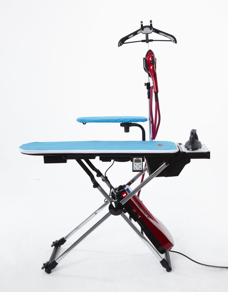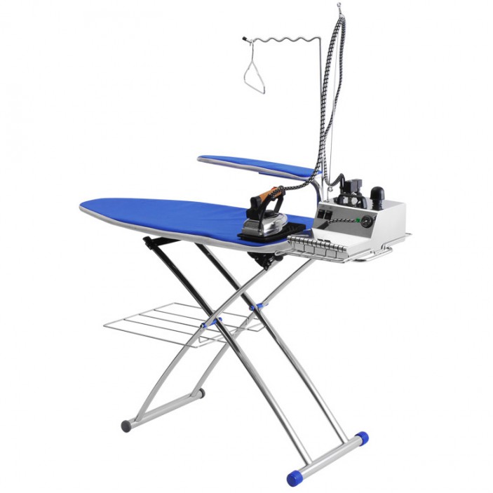 Ironing system from the Italian manufacturer, equipped with a standard fan, suction and heating function. This model really does its job well, preventing delicate items from wrinkling and removing excess water from fabrics, as well as smoothing even linen and clothes folded several times. The frame allows you to adjust the height of only 80 to 104 centimeters, but even this can be useful in the process of ironing. Unpleasant shortcomings are the huge weight of 16 and a half kilograms and too large dimensions in 162x47, although the latter will be convenient for bulky items.