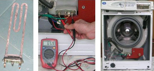 The simplest problem may be clogged filters. At the same time, the machine does not allow enough water to pass through, because of which the automation does not turn on the heater and the water is not heated. You can replace the filter with a new one yourself.