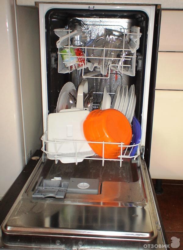 - In the case of an erroneous purchase of a kitchen product without taking into account the dimensions, such a technique is often used as a storage room for unwashed dishes, which entails the appearance of not quite pleasant aromas.