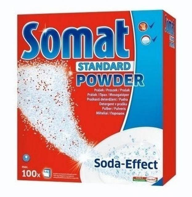 At the same time, inexpensive and effective detergent. Somat powder was created for economical housewives, since its cost does not exceed 550-650 rubles per package of 2.5 kg. The product is positioned as a composition containing the natural component of soda, which does not harm the body and destroys fat compounds due to abrasive compounds. Also, the product contains enzymes, the purpose of which is to improve the quality of washing.