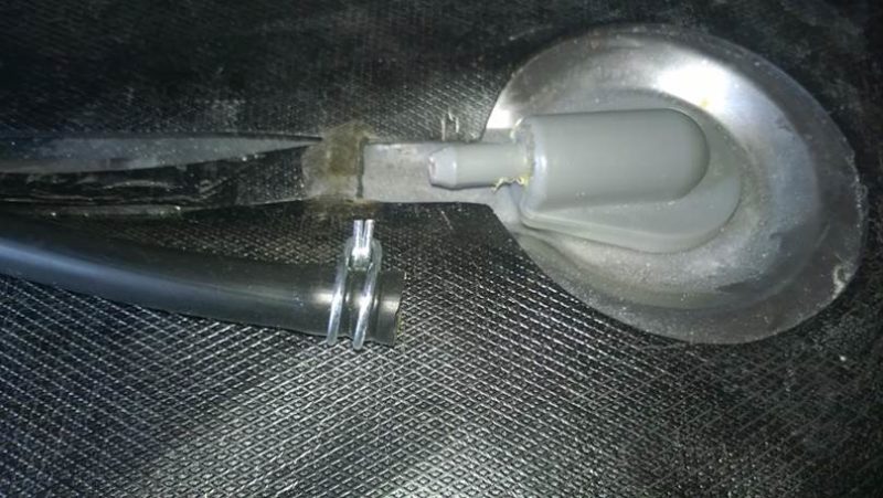 After disassembling the machine, collect all the leaked water with rags in a bucket and proceed to the inspection. If you find that the hose connecting the nozzles to the pump has fallen off, loosen the clamp securing it to the back and inspect the hose from the inside.