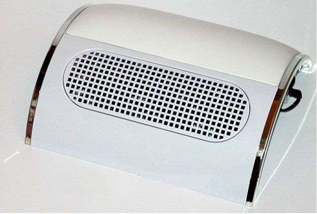The vacuum cleaner for manicure and pedicure is a body made of plastic or metal. The ventilation blades are driven by an electric motor that creates a rotation speed of about 2500-3000 rpm.