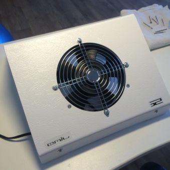 A manicure vacuum cleaner is made in the form of a house, which allows the master to conveniently serve the client. The size of the model is 200 x 280 x 120 mm, the noise level during operation does not exceed 44 dB, the power of rotation of the fan blades is 2500 rpm. Weight with packaging a little more than one kilogram. The warranty on goods from the manufacturer is one year. The average price for this hood is about 3000 rubles.
