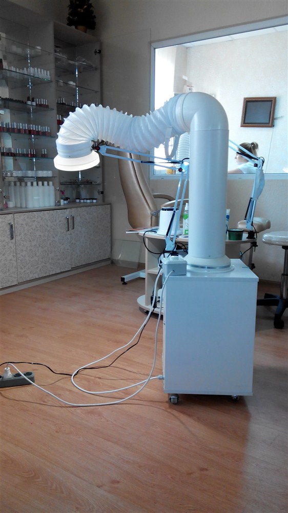 The equipment is a ventilation-retractor device located in the cosmetologist's working area. The purpose of the device is to protect the master and the client from acrylic and gel microparticles, preventing the occurrence of diseases of the eyes, respiratory organs, allergic reactions to materials. Installation of the device is regulated by sanitary and epidemiological standards, safety rules.