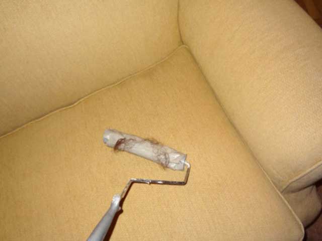 A slightly exotic way to clean fabrics and carpets is to use adhesive tape or scotch tape wound around a hand or paint roller. Adhesive litter and hairs quickly make the adhesive surface dirty, for this reason the adhesive tape and tape must be changed frequently. This method requires a lot of time, but it collects pet hair and human hair well.