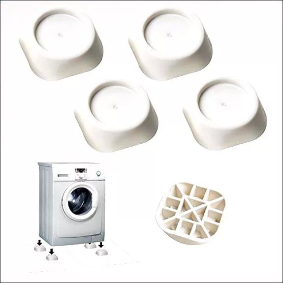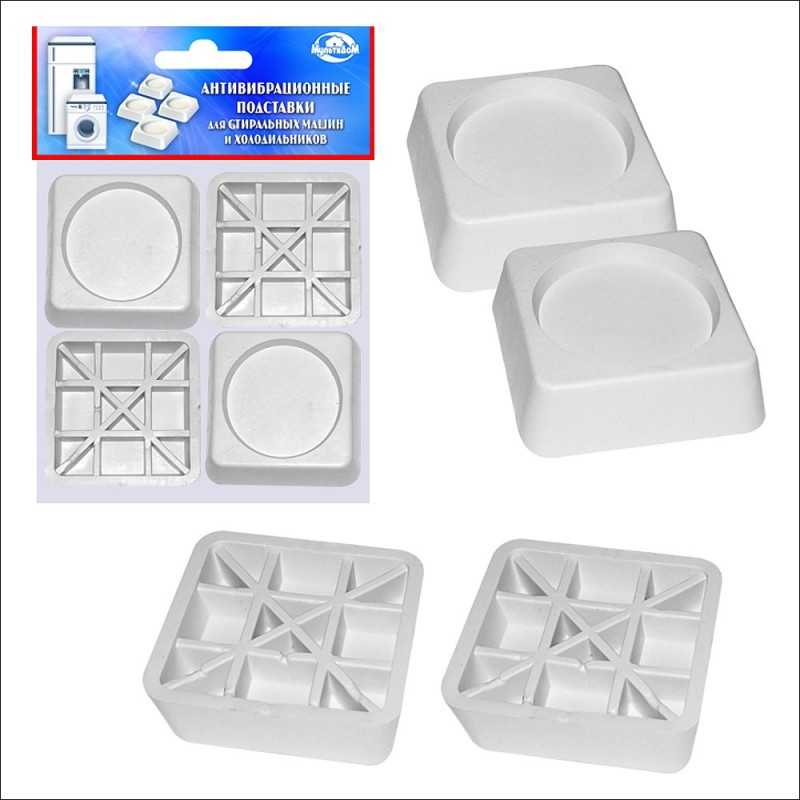 Anti-vibration stands are a rubber or plastic object, which is placed under the legs-supports of the machine, thereby damping the vibrations that arise. Typically, the dimensions of a standard stand are 5X5 cm, which allows you to place them under the legs of the washing machine without much effort.