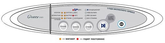 If the device is not equipped with a display, then the failure is displayed using the characteristic LED illumination: the LEDs for the washing functions blink and the temperature LEDs 40 ° C and 95 ° C (Bio 60 ° C) light up.