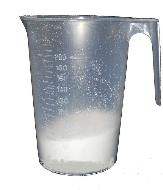- The amount of powder is measured using a measuring cup. Its volume is 200 g. In its absence, you can measure this unit using other improvised means.