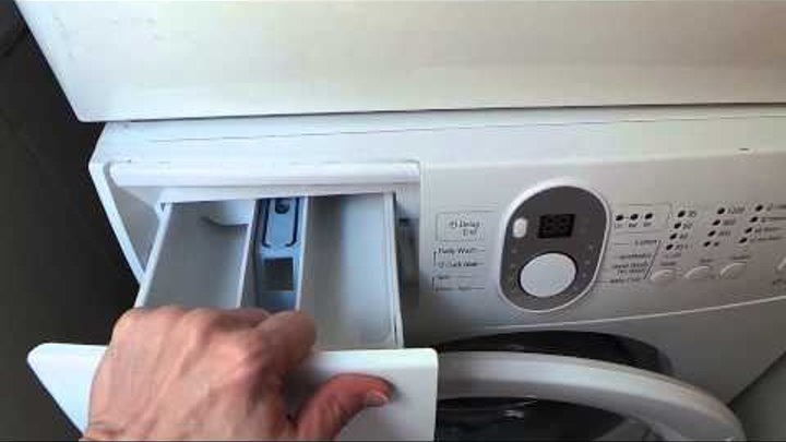 - We pull out the powder tray and inspect it for debris. This must be done quite carefully, since it can subsequently get into the drum of the machine.