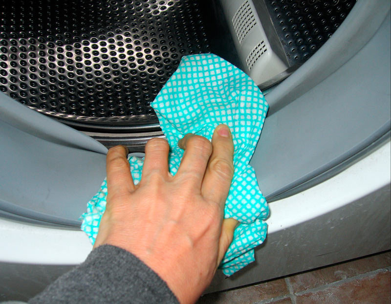 - After washing, open the doors and rinse the drum inside. It may contain residues of limescale that must be removed. Wipe rubber seal, sunroof.