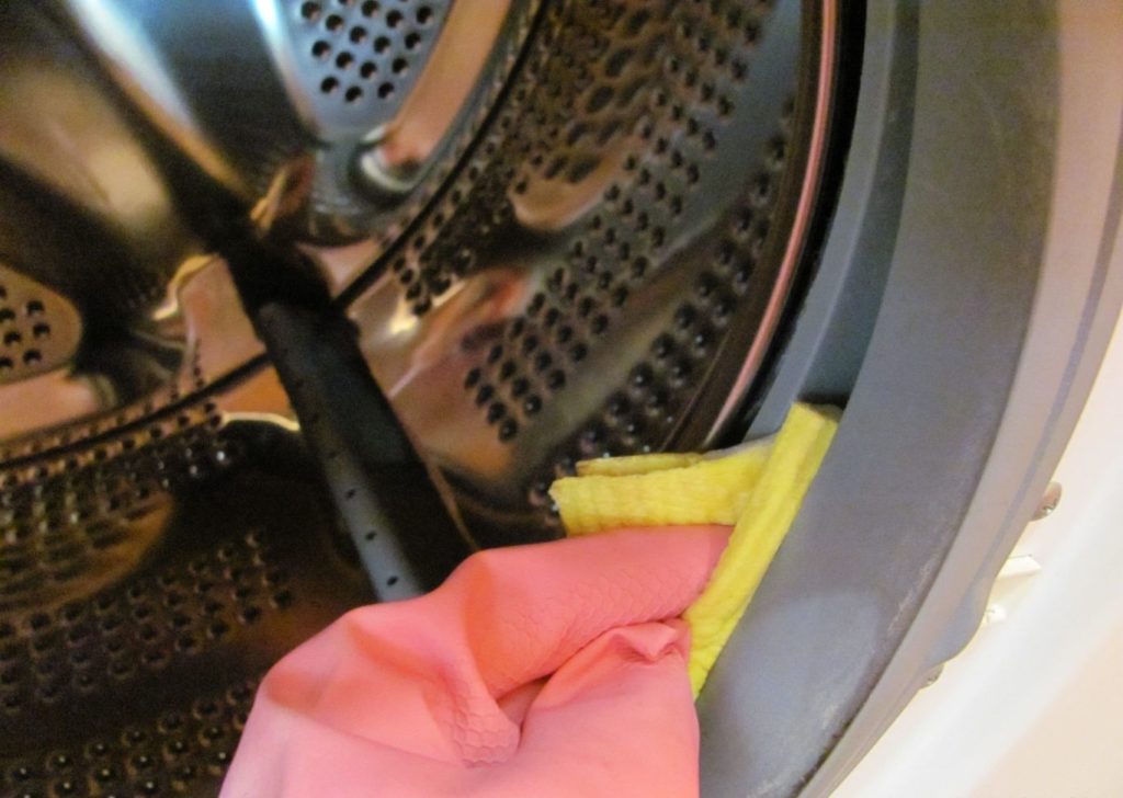 - Wash the rubber seal with a damp cloth and wipe the glass on the loading door.