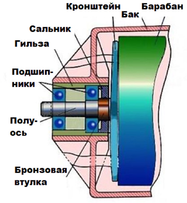 Internal elements of the washing machine: bearings, bushings, oil seals