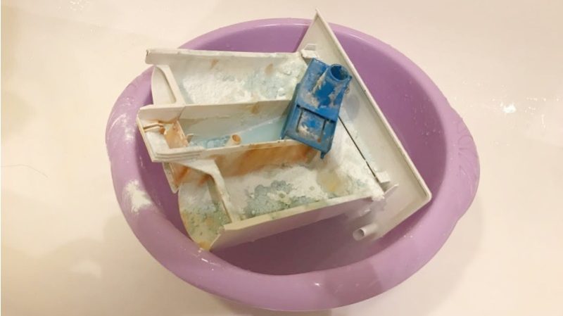 If you can’t or don’t want to wait so much, and the hopper is very dirty, you can use a solution of soda and vinegar. To do this, extinguish the baking soda with vinegar and apply the mixture on the walls of the powder receiver, soak for a couple of hours and eliminate plaque with a brush, rinse the tray very well and from all sides with tap water.