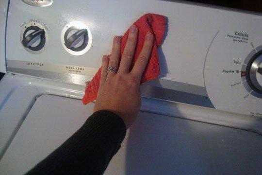 How to effectively deal with such pollution? Everything is simple. As with internal contamination, you can use a solution of vinegar and baking soda. Dampen a sponge or rag in these products and wipe the control panel, front of the washer, back cover, and side walls.