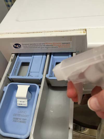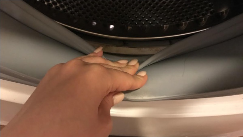 Use a toothbrush to clean hard-to-reach areas of the rubber cuff of the washing machine. ”