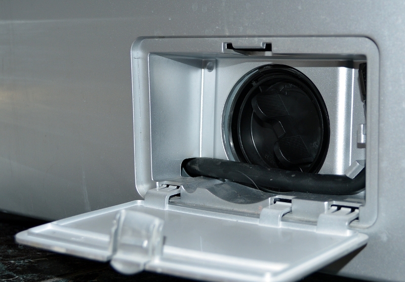 - In the lower part of the wall there is a special door, opening which you can get access to the filtering element of the drain device.