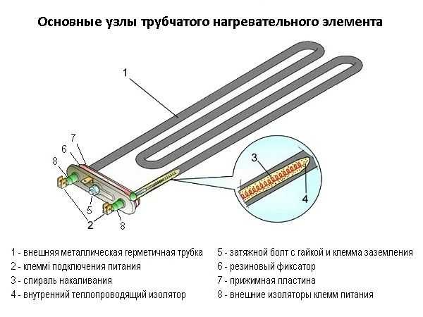 Reference! To minimise dimensions of washing machines, manufacturers have to resort to original design solutions. In particular, in order to reduce the size of the heating element and at the same time achieve a larger heating area, the tubular heater is made in the form of folded y-shaped arcs.