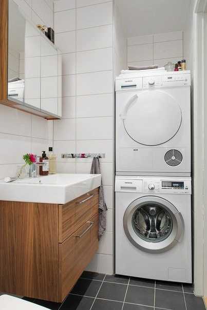 Tip. In a small living room, to save space, it is recommended to install the dryer on top of the washing machine, in the form of a column.
