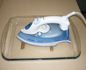 - Vinegar will help to easily get rid of the formed scale in the iron. You need to take a suitable container, pour water and a little vinegar into it and put on a slow fire. Place wooden sticks in the container at the bottom so that the working surface of the device does not touch the bottom. The device is placed in a dish so that water covers only the working surface of the sole.