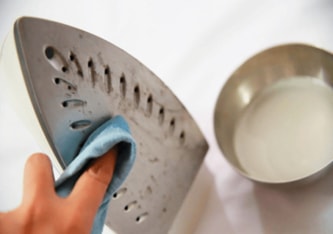 - You need to moisten a cloth with vinegar, alcohol or a mixture of them and wipe the warm surface of the iron well. After that, warm up the device and iron some old thing, all the dirt will remain on it.