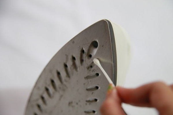 Synthetic fabric fibers, and sometimes polyethylene, often stick to the iron. Acetone or nail polish remover will help clean such impurities. To do this, moisten a cotton swab with a product and wipe the places of the burn.