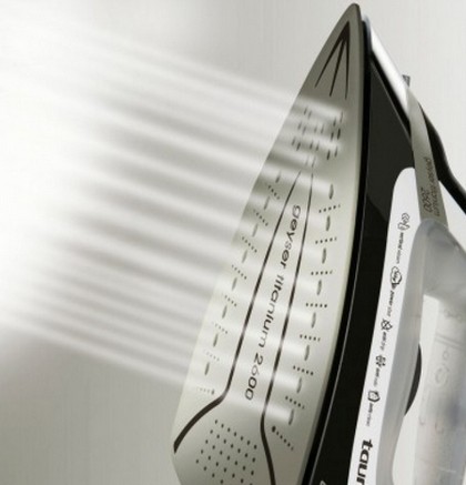 - Iron Tefal FV9630. A steam appliance with a power of 2600 W provides high-quality ironing of things from any material. The device provides a steam boost of up to 200 grams per minute. Almost 300 ml of liquid can be poured into the tank. There is auto power off in the vertical position after 8 minutes, in the horizontal - after 30 seconds. The price of iron in stores is about 7 thousand rubles;