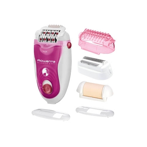 - Rowenta EP5660 - almost silent device, works only from a network. The epilator is equipped with a floating head with 24 tweezers, nozzles for shaving and peeling, as well as a limiter and trimmer.