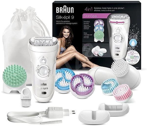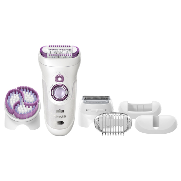 - Braun 9-969 Silk-epil 9, which performs hair removal with a length of 0.05 cm, increased by 40% in length with a head. For work, you can use two speeds. In this model, there is the possibility of autonomous operation, both in wet and in dry conditions, the duration of which is 40 minutes. The presence of a white backlight, a peeling nozzle, as well as a facial cleanser increases the functionality and practicality of the device;