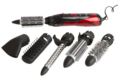 - Hair dryers-brushes are distinguished by a variety of nozzles. The minimum set is round brushes of different diameters. With their help, you can raise the hair at the roots and create waves along the entire length. Round brushes can be with rare or frequent bristles. Some models come with a nozzle in the form of tongs for straightening hair.
